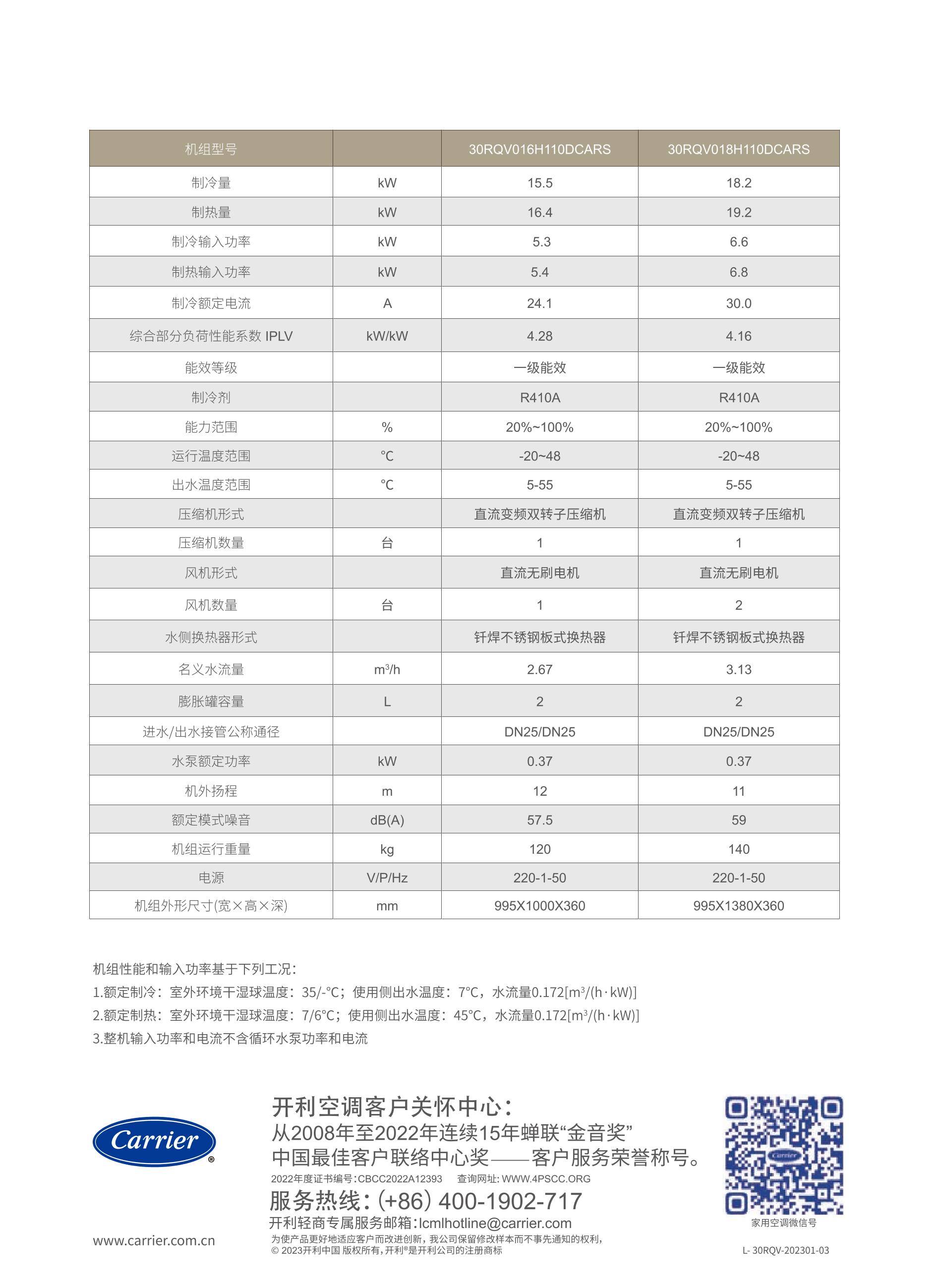 开利 Mini VWV水多联16kw、18kw外机数据系列
